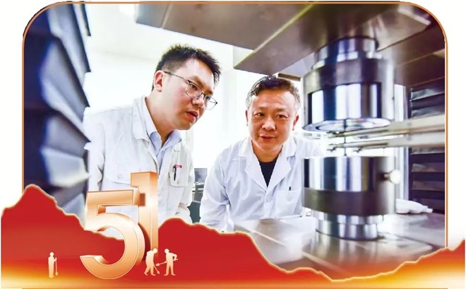 圖為唐科(左)和同事進行試驗。 (大冶特鋼 供圖)