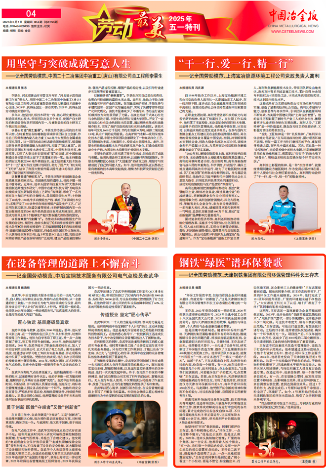 “我會繼續堅守在這個崗位上,為鋼鐵行業的綠色發展貢獻自己的力量。”他最后說。(魏霈)
