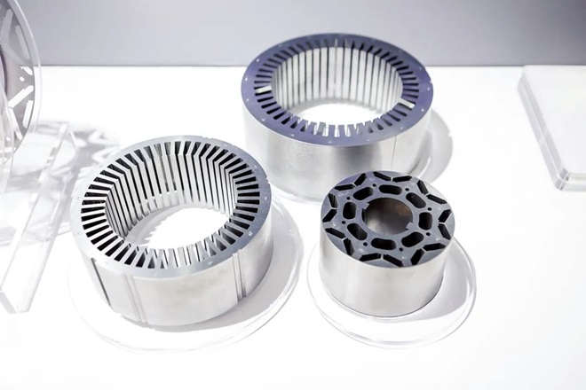 圖為寶鋼股份無取向硅鋼應用于新能源車驅動電機鐵芯。(寶鋼股份 供圖)