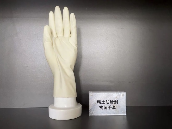 手術臺救星來了!包鋼將有機酸和稀土化合物聚合并高溫煅燒,獲得具有片層結構的稀土抗菌功能材料,將其摻雜進膠皮中制成外科手套,防穿刺力提升30%以上,被外科醫生稱為“手術臺上的隱形護盾”。