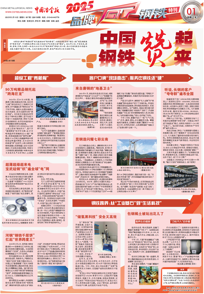 中國鋼鐵的蛻變之路,是技術攻堅與客戶需求的雙向奔赴。當創新材料鑄就國之重器時,當工業科技與日常生活緊密融合時,當越來越多鋼企化身“材料方案解決商”,“與客戶共同定義未來需要什么”時,國產鋼的品牌故事,注定越寫越精彩。