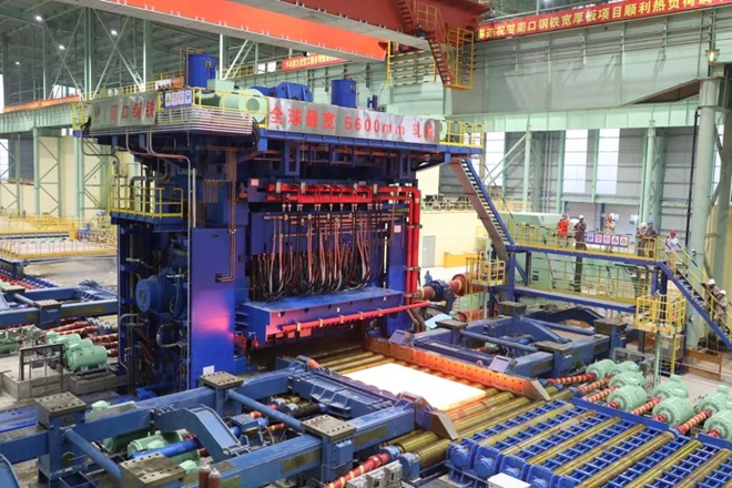 圖為河南鋼鐵集團5600毫米軋機生產(chǎn)場景。(閆明 攝)