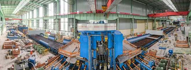 圖為河南鋼鐵集團5500毫米精軋機安裝。(田帥杰 攝)