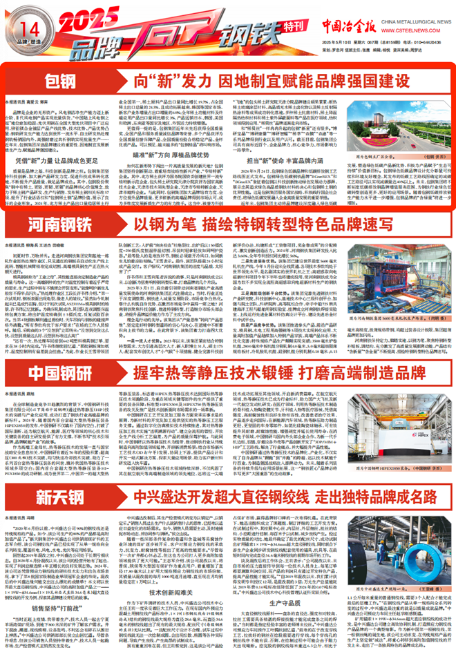品牌是企業的無形資產。風電鋼潔凈生產能力邁上新臺階,Ⅱ代風電鋼產品實現批量供貨,“中國陸上風電鋼之冠”地位愈加穩固;光伏用鋼在全國大型光伏項目中廣泛應用,鋅鋁鎂合金鍍層產品產線優勢、技術優勢、產品優勢凸顯;鋼軌研發生產能力達到世界一流水平,自主研發熱處理鋼軌暢銷國內外,高強耐磨過共析鋼軌實現批量生產……近年來,包鋼集團深諳品牌建設的重要性,因地制宜發展新質生產力,賦能品牌強國建設。