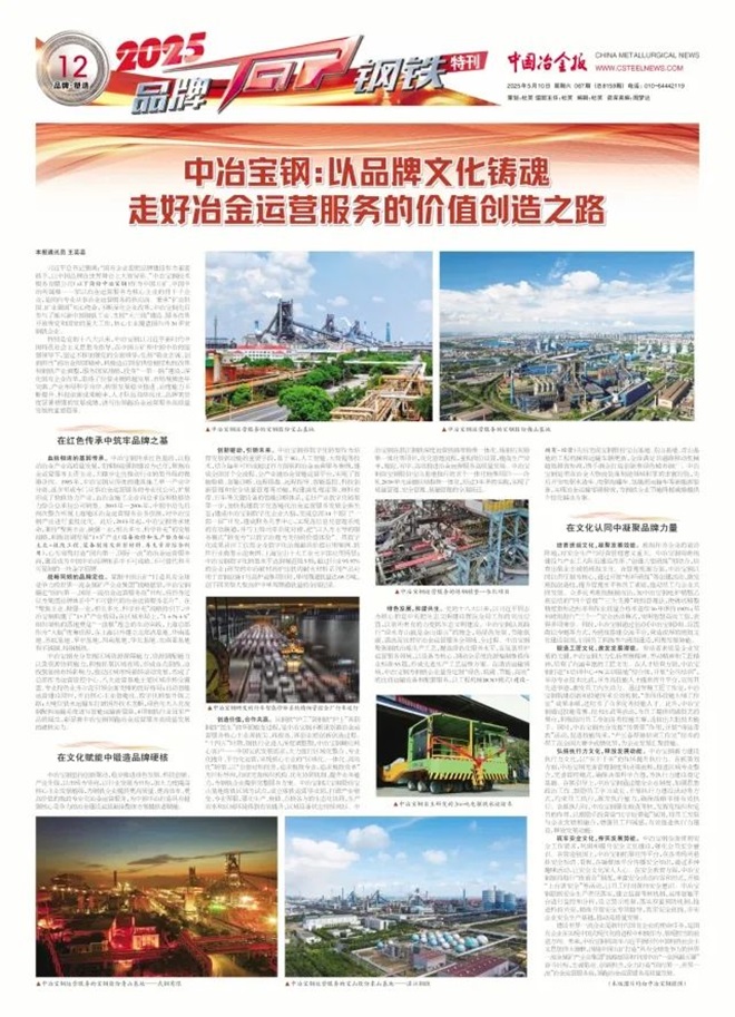 習近平總書記強調:“國有企業要把品牌建設作為重要抓手,讓中國品牌在世界舞臺上大放異彩。”中冶寶鋼技術服務有限公司(以下簡稱中冶寶鋼)作為中國五礦、中國中冶所屬唯一一家以冶金運營服務為核心主業的骨干子企業,是國內專業從事冶金運營服務的供應商。秉承“礦業報國、礦業強國”初心使命,不斷深化企業改革,中冶寶鋼先后參與了振興新中國鋼鐵工業、支援“大三線”建設、服務改革開放等黨和國家的重大工作,核心主業覆蓋國內外30多家鋼鐵企業。