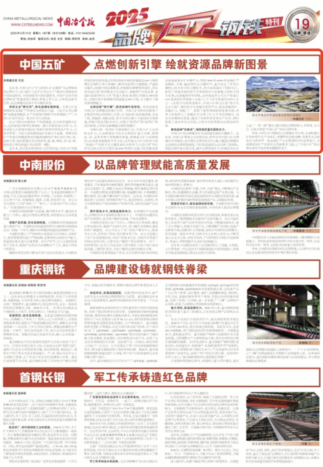 近年來,中國五礦以“礦業(yè)報國、礦業(yè)強國”為品牌使命和品牌口號,深入踐行習(xí)近平總書記關(guān)于“推動中國制造向中國創(chuàng)造轉(zhuǎn)變、中國速度向中國質(zhì)量轉(zhuǎn)變、中國產(chǎn)品向中國品牌轉(zhuǎn)變”的重要指示精神,聚焦主責(zé)主業(yè),以科技創(chuàng)新為引擎,在品牌建設(shè)征程中書寫精彩答卷。