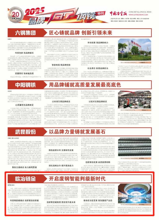 作為中國資源循環集團有限公司的“基本盤”,歐冶鏈金未來將繼續以新發展理念為引領,致力于建設創新型企業,加快研究高值化利用核心技術,重點解決行業面臨的痛點難點問題,提升再生鋼鐵利用效益,切實當好行業發展的引領者和推動者,更好保障國家戰略資源安全,助推資源循環利用產業高質量發展。(章熙娟 梁玉)