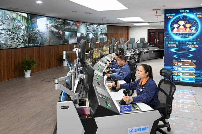 湘鋼五米板廠智慧中心員工正在精心操作。(賀意波 拍攝)