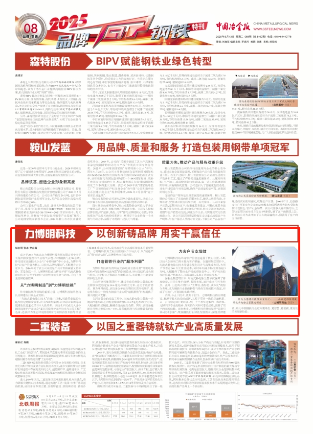 品牌,不止于技術,更源于信任。力博明科技的品牌建設,既源于技術的持續創新,又源于項目一線的點滴積累。從一臺臺穩定運行的設備,到一個個攻堅克難的工程故事,力博明以專業的精神、務實的作風和可靠的品質,贏得了用戶的高度信賴。面向未來,力博明科技將繼續堅持“黨建引領+技術創新”,聚焦鋼鐵行業綠色發展需求,深化品牌建設,助力中國鋼鐵行業邁向更綠色、更智慧、更低碳、更高效的發展新階段。(鄒吉明 張冰 尹山青)