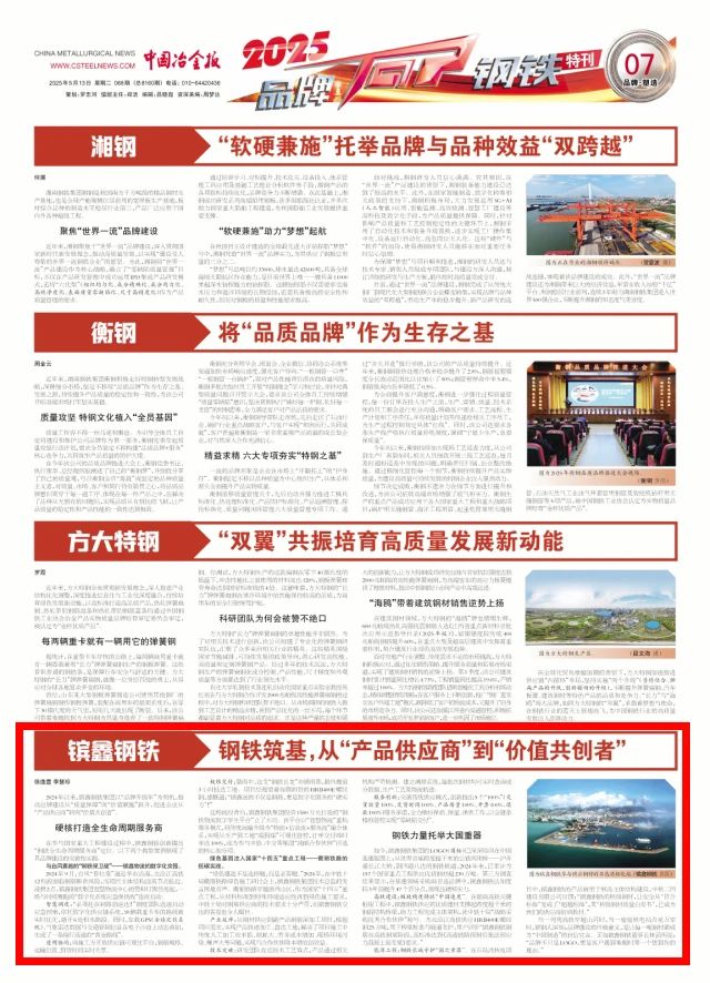 2024年以來(lái),鑌鑫鋼鐵集團(tuán)以“品牌升級(jí)年”為契機(jī),推動(dòng)品牌建設(shè)從“質(zhì)量保障”向“價(jià)值賦能”躍升,促進(jìn)企業(yè)從“產(chǎn)品供應(yīng)商”轉(zhuǎn)向“價(jià)值共創(chuàng)者”。