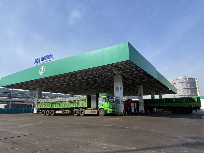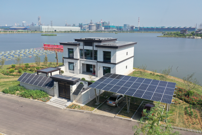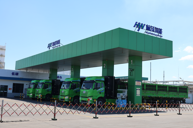 全球首套1860立方米高爐噴氫系統穩定運行,可降低焦炭消耗和碳排放;獨家引進國外專利技術,將焦爐煤氣、轉爐煤氣轉化為乙二醇和LNG(液化天然氣),每年固碳136萬噸;550兆瓦光伏覆蓋廠房頂、停車場、鹽堿地等場景,年發電10億千瓦時,年減排108萬噸二氧化碳;600輛氫能重卡加電動裝載機實現運輸零排放。