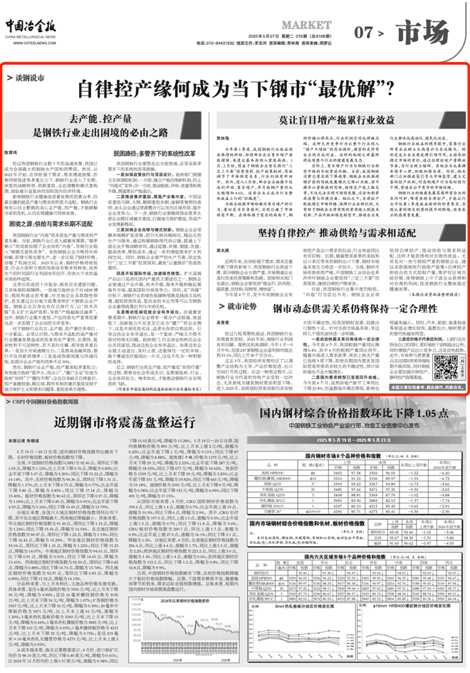 實際上,盲目增產(chǎn)行為與鋼鐵行業(yè)轉(zhuǎn)型升級的目標背道而馳。當前,我國鋼鐵消費總量呈現(xiàn)下降趨勢,鋼鐵企業(yè)依賴規(guī)模擴張的傳統(tǒng)發(fā)展模式已難以為繼,若不摒棄以量取勝的思維,繼續(xù)在產(chǎn)能上做文章,不僅無法實現(xiàn)可持續(xù)發(fā)展,還會加劇資源浪費與環(huán)境污染。相比之下,自律控產(chǎn)既能穩(wěn)定市場價格、保障行業(yè)合理利潤,又有助于鋼鐵企業(yè)將有限的資源投入到技術(shù)創(chuàng)新、產(chǎn)品升級和綠色轉(zhuǎn)型中,推動企業(yè)及行業(yè)整體向高端化、綠色化邁進。