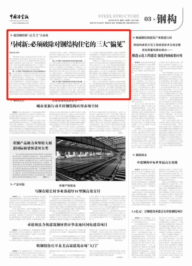 第二大“偏見”是鋼結構住宅造價高的問題。針對工程界普遍存在的鋼結構住宅房屋建筑成本和房屋設施設備安裝成本高等觀念,馬樹新表示,通過優化設計、產業鏈協同、使用高強鋼,可以解決這一問題,合理設計使用高強鋼降低用鋼量,可以確保鋼結構建筑項目經濟合理、成本可控、技術可靠、實施有效。他同時也指出,一些鋼結構住宅項目因各種因素導致鋼結構造價高,進而通過使用廉價劣質配套材料來降低成本的做法不可取。“使用劣質墻體材料導致開裂,與鋼結構無關。”他說道。