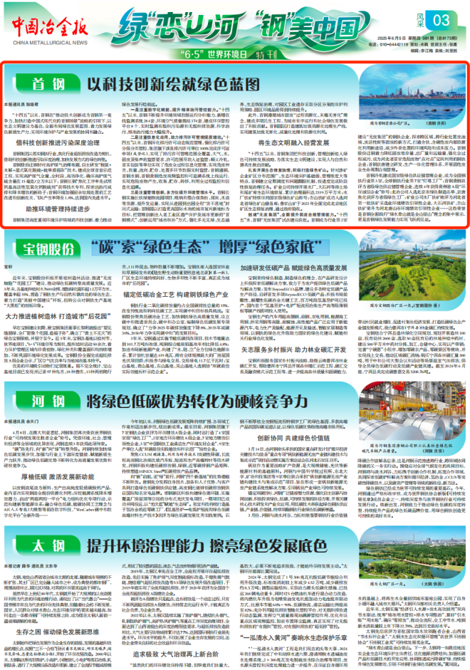 “十四五”以來,首鋼在“推動技術創新成為首鋼第一競爭力,加快打造中國式現代化的首鋼場景”戰略的引領下,以生態文明建設為基色,全面布局綠色發展藍圖,著力發展綠色新質生產力,實現環境保護與產業發展的協同和融合。