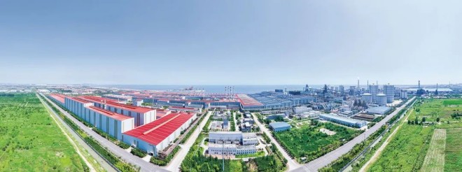 圖為航拍日照鋼鐵精品基地。(郭陽 攝)
