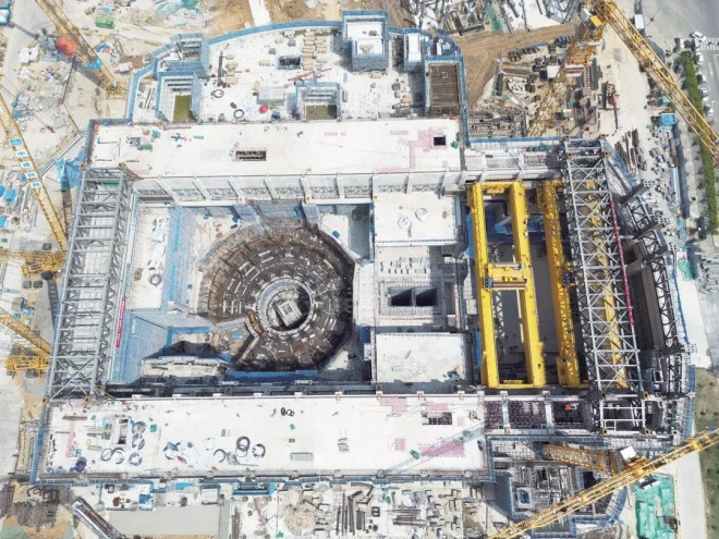 圖為中國(guó)BEST聚變裝置總裝現(xiàn)場(chǎng),CHSN01鋼將支撐起這個(gè)“人造太陽(yáng)”超導(dǎo)磁體系統(tǒng)的核心結(jié)構(gòu)。 (中科院等離子體所 供圖)