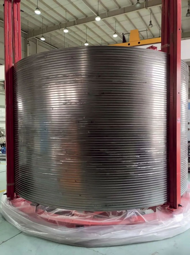在應(yīng)用拓展方面,自2024年1月份首次批量供貨10噸起,1年內(nèi)即實(shí)現(xiàn)向BEST裝置百噸級(jí)批量供貨。其中,總重約300噸的CHSN01不銹鋼鎧甲已完成超22588米交付(總需求量約52438米),占總需求的43%;總重約200噸的CHSN01線圈盒直線段部件完成交付3套(總需求量為17套)。如今,其應(yīng)用版圖正從BEST裝置核心部件,快速拓展至航天深低溫貯箱、氫能儲(chǔ)運(yùn)裝備等市場(chǎng),引起法國(guó)原子能委員會(huì)(CEA)、德國(guó)卡爾斯魯厄理工學(xué)院(KIT)等國(guó)際頂尖機(jī)構(gòu)的關(guān)注。