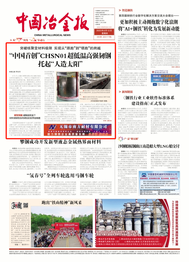 CHSN01鋼的規(guī)模化應(yīng)用,是中國(guó)鋼鐵人面向人類共同挑戰(zhàn)交出的又一份完美答卷。未來(lái),當(dāng)“人造太陽(yáng)”的光芒照亮人類文明時(shí),CHSN01鋼作為托起這片光芒的鋼鐵脊梁,必將在中國(guó)乃至世界新能源史上,鐫刻下鑄造大國(guó)重器的輝煌篇章。清潔能源革命的巨輪,正從東方啟航。