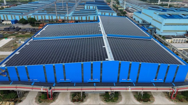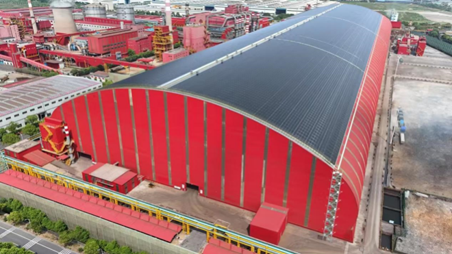 長強(qiáng)鋼鐵料棚改造項(xiàng)目建設(shè)規(guī)模為20兆瓦,發(fā)綠電電量為4.38億千瓦時(shí),取得的環(huán)境效益相當(dāng)于減排二氧化碳36萬噸,節(jié)約標(biāo)準(zhǔn)煤13.38萬噸,減排二氧化硫33.8噸、氮氧化物54.86噸,植樹20萬棵。