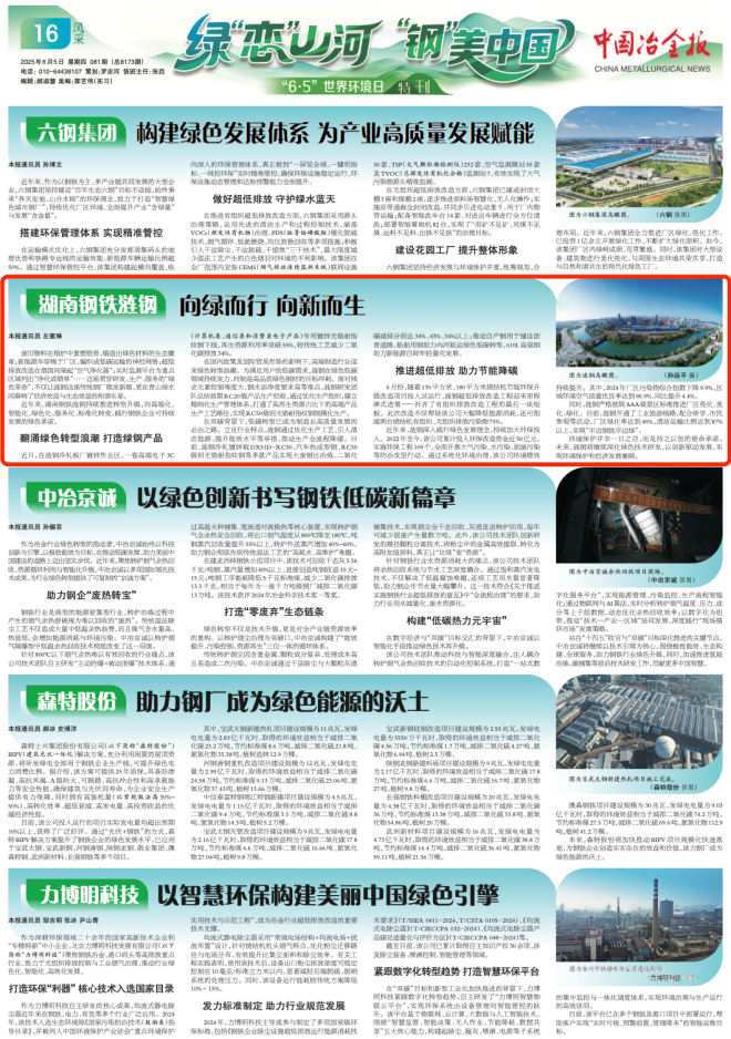 近年來,湖南鋼鐵漣鋼持續推進轉型升級,向高端化、智能化、綠色化、服務化、標準化轉變,踐行鋼鐵企業可持續發展的綠色承諾。