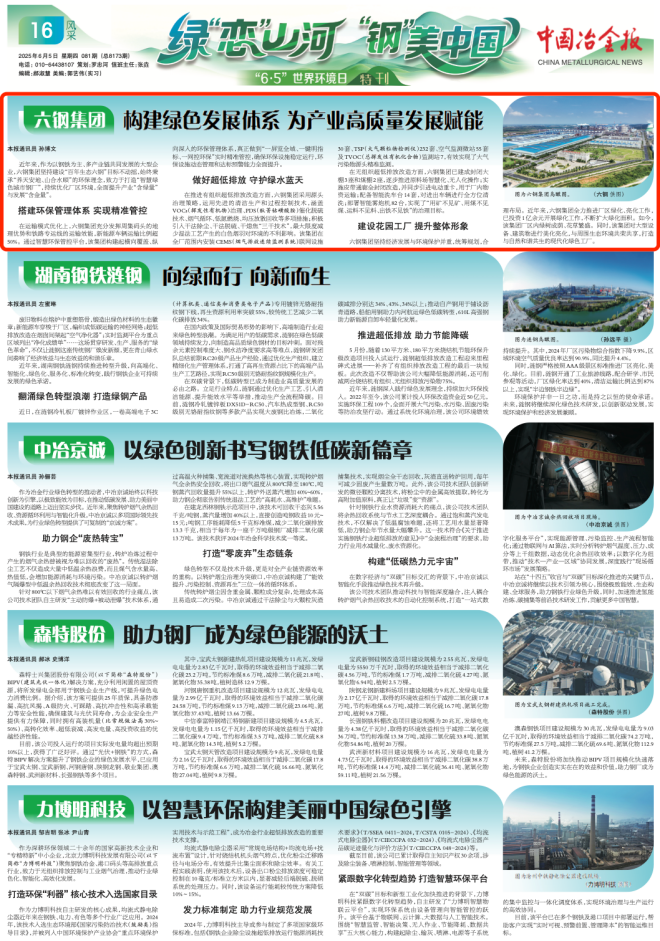 近年來,作為以鋼鐵為主、多產(chǎn)業(yè)鏈共同發(fā)展的大型企業(yè),六鋼集團(tuán)堅(jiān)持建設(shè)“百年生態(tài)六鋼”目標(biāo)不動(dòng)搖,始終秉承“養(yǎng)天安地、山合水順”的環(huán)保理念,致力于打造“智慧綠色城市鋼廠”,持續(xù)優(yōu)化廠區(qū)環(huán)境,全面提升產(chǎn)業(yè)“含綠量”與發(fā)展“含金量”。