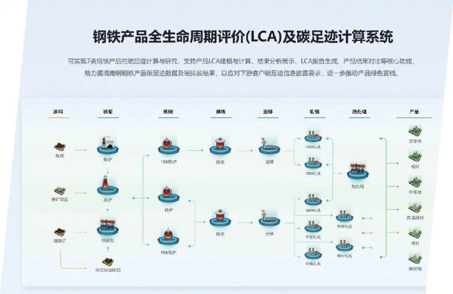 基于全生命周期評價的產品碳足跡核算,是精準服務下游客戶、拓展綠色低碳產業鏈、促進低碳價值實現的基礎。2024年,南鋼基于ISO系列國際權威標準和鋼鐵行業EPD(環境產品聲明)平臺等,構建起適合工業領域的數字化LCA平臺。