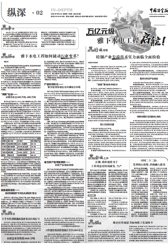 作為人類史上規模最大的水電基建項目,這一“世紀工程”將為鋼鐵行業帶來哪些發展機遇?各方對此有何看法和期待?《中國冶金報》將進行解讀。