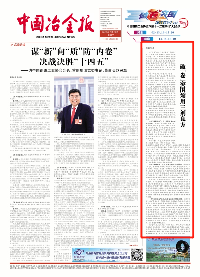 當“內卷”成為行業發展的“緊箍咒”時,“反內卷”便成為鋼鐵行業轉型升級的必答題。7月1日召開的中央財經委員會第六次會議提出,依法依規治理企業低價無序競爭,引導企業提升產品品質,推動落后產能有序退出。“反內卷”號角再次吹響,不僅是對無序競爭的宣戰,還是對高質量發展路徑的重新定義。“反內卷”,正成為一場名副其實牽涉各行各行的“全民工程”。