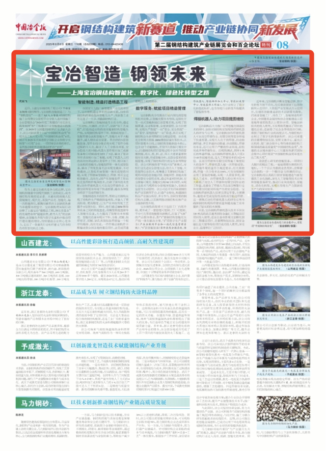一款款匠心研發的智能裝備,一項項引人矚目的精品工程,一座座熠熠生輝的時代地標,一個個引以為傲的金色獎杯,詮釋著寶冶鋼構一步一個腳印奮力拼搏的印記。寶冶鋼構將認真踐行國家智能建造與新型建筑工業化戰略,深化人工智能等技術應用和智能裝備研發,推動行業向高端化、智能化、綠色化轉型,實現從傳統生產力到新質生產力的深刻變革。(代長飛)