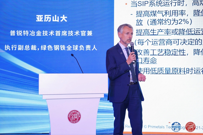 普銳特冶金技術(shù)全球首席技術(shù)官兼執(zhí)行副總裁,綠色鋼鐵全球負(fù)責(zé)人亞歷山大博士出席“鋼鐵行業(yè)綠色低碳技術(shù)交流會”分論壇并作題為“綠色鋼鐵轉(zhuǎn)型——從承諾走向執(zhí)行”的主題報告。他表示,鋼鐵行業(yè)正面臨需求停滯、能源轉(zhuǎn)型、原料緊張及脫碳需求緊迫等多重挑戰(zhàn),公司通過對現(xiàn)有資產(chǎn)的工藝優(yōu)化而在鋼鐵價值鏈的各個環(huán)節(jié)開發(fā)低碳方案。據(jù)他介紹,普銳特冶金技術(shù)推進(jìn)數(shù)字和可持續(xù)冶金革命分為三個階段:優(yōu)化階段、過渡階段、綠鋼階段,在每個階段普銳特冶金技術(shù)均為鋼鐵冶金流程提供創(chuàng)新性的技術(shù)方案。
