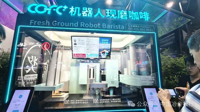 服貿會現場還有一位人氣王——COFE+的全智能咖啡機器人。只見機械臂行云流水般地完成精準取杯、智能落冰、現磨咖啡豆、高壓萃取、綿密打奶泡等一系列動作,最終將一杯氤氳著熱氣的拉花咖啡穩穩推至取餐口時,科技與人文的碰撞引發陣陣驚嘆。從掃碼下單到取到咖啡,整個過程僅需60秒。
