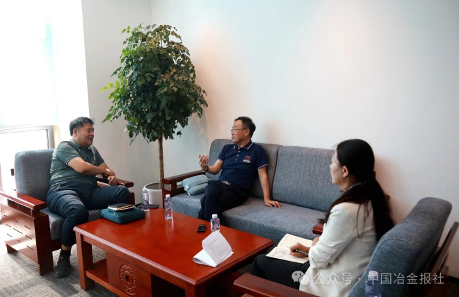 圖為陸才垠向《中國冶金報》記者介紹榮程新能氫能產業發展布局。