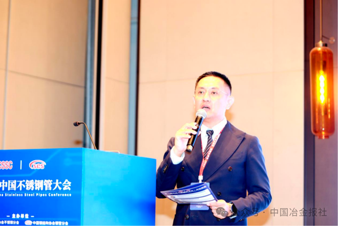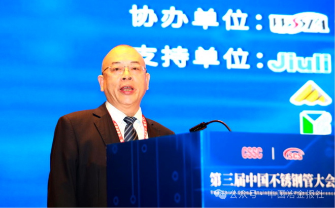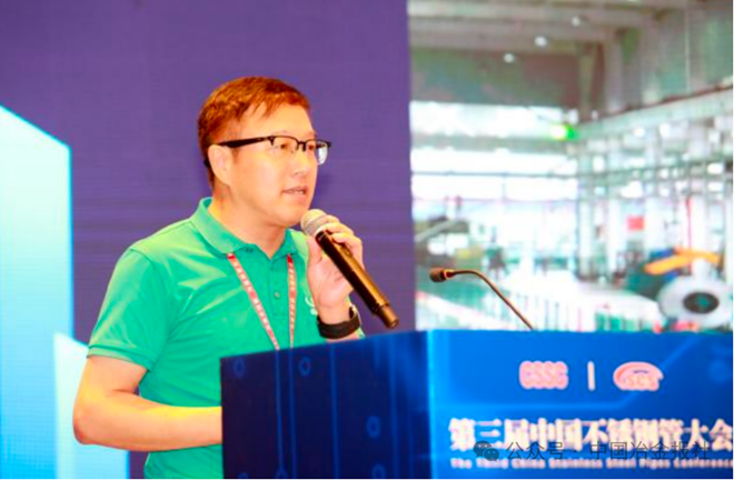 圖為鋼協(xié)不銹鋼分會專家委員會專家李天寶做題為《中國不銹鋼管行業(yè)發(fā)展現(xiàn)狀及未來發(fā)展趨勢》的主旨報告