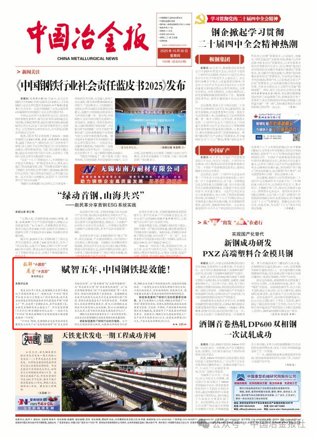 截至2025年9月底,我國(guó)鋼鐵行業(yè)累計(jì)建成36個(gè)卓越級(jí)智能工廠,超額完成“十四五”規(guī)劃中打造30家以上智能工廠的目標(biāo)任務(wù);在代表全球制造業(yè)智能制造和數(shù)字化最高水平的“燈塔工廠”中,全球有7家鋼鐵企業(yè),其中我國(guó)有3家,分別是寶鋼股份寶山基地工廠、中信泰富特鋼(興澄特鋼)和首鋼股份冷軋公司……這些只是“十四五”時(shí)期我國(guó)鋼鐵行業(yè)智能制造方面亮眼成績(jī)的一個(gè)縮影。
