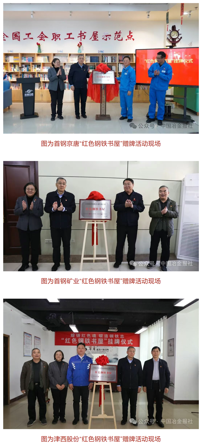 11月10日~11日,為深入推進(jìn)全民閱讀,進(jìn)一步落實(shí)“讀好專業(yè)書 做好答卷人”的行業(yè)倡議,為文化強(qiáng)國建設(shè)搭建更多具有鋼鐵行業(yè)特色的文化場景,由中國冶金職工思想政治工作研究會(以下簡稱“冶金政研會”)、冶金工業(yè)出版社聯(lián)合發(fā)起的“紅色鋼鐵書屋”建設(shè)活動花開河北:首鋼京唐的“逸致書屋”、首鋼礦業(yè)的“心靈驛站書屋”與“青年驛站書屋”、津西股份的“職工書屋”相繼獲贈“紅色鋼鐵書屋”標(biāo)牌。各企業(yè)還分別召開了紅色文化共建座談會。
