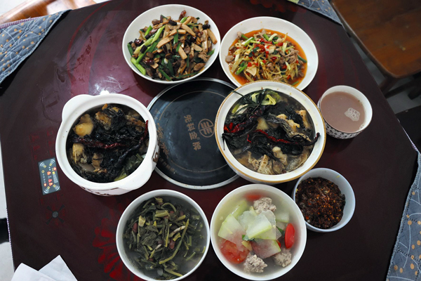 很快,食堂的飯桌上擺滿了熱氣騰騰的飯菜,除了“湖南魚”,還有不少當(dāng)?shù)孛朗场.?dāng)然,還有必不可少的洋芋拌辣椒。