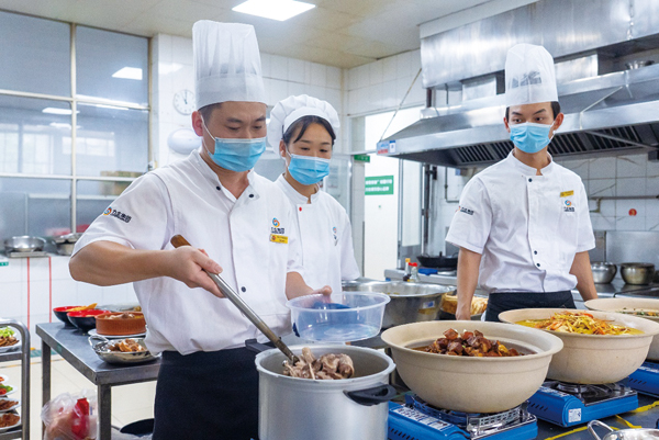 圖為在馬鋼食堂承辦的安徽省“新徽菜 名徽廚”活動中,參賽人員正在制作美食。 (馬力生 攝)