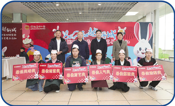 活動現場,參賽選手一會上下翻“飛”炒鍋,煎炒烹炸;一會精雕細刻,各種雕花技藝揮灑自如。大家用普通的食材,做出了一道道造型精致、寓意吉祥的創意菜品。“闔家幸福慶團圓”“福兔報春”“兔來運轉”“玉兔報春 錦上添花”……一盤盤造型各異的佳肴讓人垂涎欲滴。每道創意菜品的名字既與所需食材關聯,又與兔年新春呼應,同時還象征著職工們對新一年美好生活的期待。