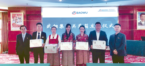 圖為拉薩新鼎大酒店舉辦的武鋼集團(tuán)關(guān)愛箱發(fā)放儀式現(xiàn)場。(孫勁/攝)