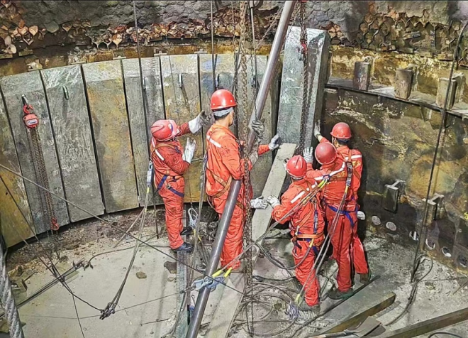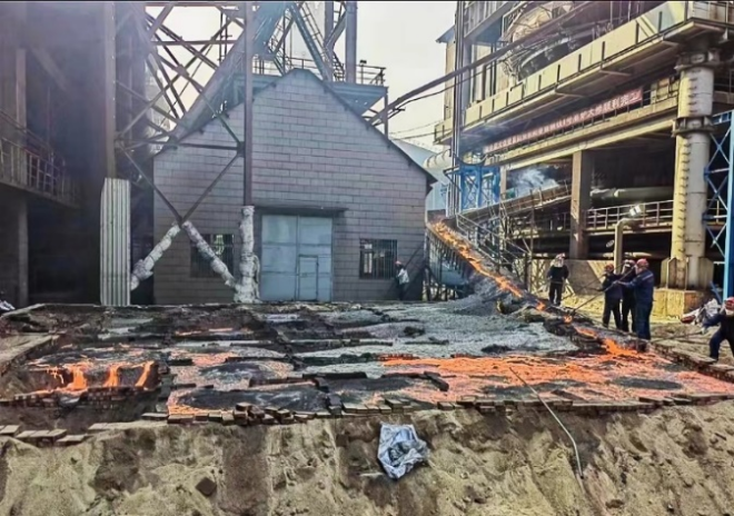 圖為在由聯(lián)合榮大總包的陽春新鋼1#高爐快速大修工程中,施工隊(duì)正在儲鐵地坑放凈殘鐵。