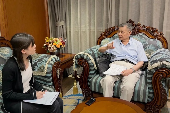 圖為殷瑞鈺正接受《中國冶金報》記者專訪。(記者 陳曦 攝)