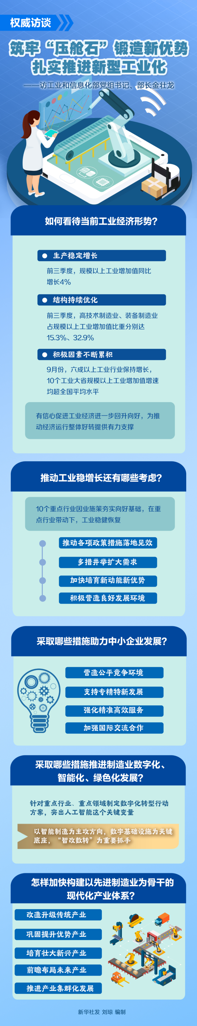 工業(yè)是國民經(jīng)濟的主體和增長引擎,四季度經(jīng)濟運行對實現(xiàn)全年目標任務(wù)至關(guān)重要。如何鞏固恢復(fù)向好態(tài)勢?怎樣培育持久競爭力?工業(yè)和信息化部黨組書記、部長金壯龍接受了新華社記者采訪。