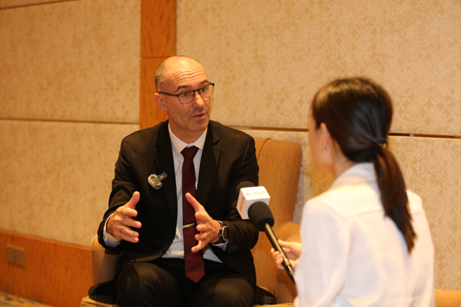 圖為菲爾·格雷接受《中國冶金報》記者專訪