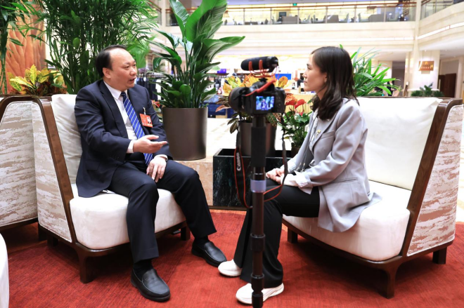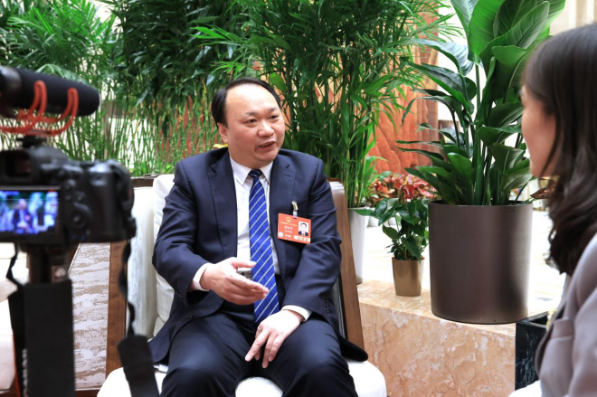 圖為袁斯浪接受中國冶金報社兩會報道組記者專訪