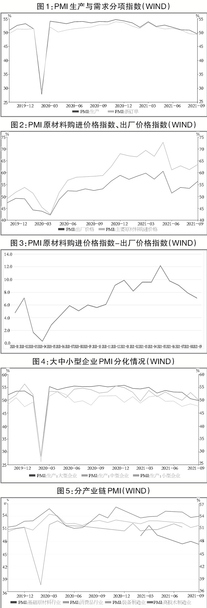 我國制造業(yè)PMI生產(chǎn)指數(shù)自2020年2月份以來首次跌落至“榮枯線”以下,環(huán)比大幅下行1.4個百分點至49.5%,是下滑最嚴(yán)重的分項,也是拖累制造業(yè)PMI下滑的最大因素。一般而言,除春節(jié)長假外生產(chǎn)指數(shù)會高于采購量指數(shù),生產(chǎn)動力在前、采購意愿在后。今年9月份,我國首現(xiàn)生產(chǎn)指數(shù)低于采購量指數(shù),生產(chǎn)指數(shù)從今年3月的高點53.9%一路下滑至49.5%,回落4.4個百分點;采購量指數(shù)則同步從今年3月份的高點53.10%一路下滑至49.7%,回落3.4個百分點。9月份生產(chǎn)指數(shù)低于采購量指數(shù)首現(xiàn)差值正0.2個百分點,釋放出生產(chǎn)受需求、限電等諸多因素限制而動力嚴(yán)重不足的信號。