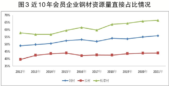 近10年會員企業鋼材資源量直接占比提高6.91個百分點