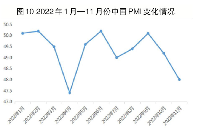 根據國家統計局的數據,11月份,中國制造業PMI(采購經理指數)為48.0%,環比下降1.2個百分點,連續低于臨界值,這表明我國制造業經營景氣水平持續低迷。而1月—11月份,我國PMI平均只有49.3%,同比下降1.3個百分點,表明今年初以來,在多種不確定性因素影響下,我國經濟下行壓力巨大。