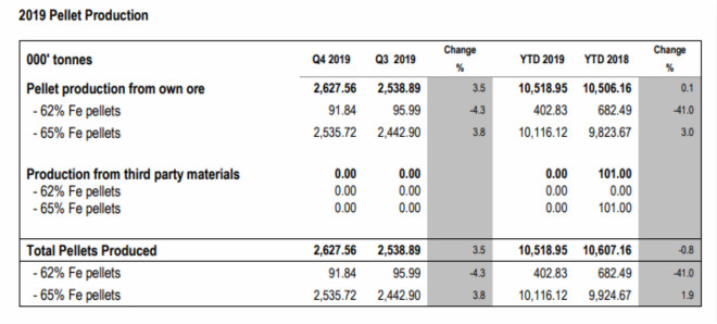 2019年的球團銷量約為1030萬噸(2018年為1022.7萬噸)。截至2019年12月31日的凈債務約為2.82億美元(2018年12月31日為3.40億美元)。截至2019年12月31日,公司現金余額約為1.31億美元(2018年12月31日為6200萬美元)。