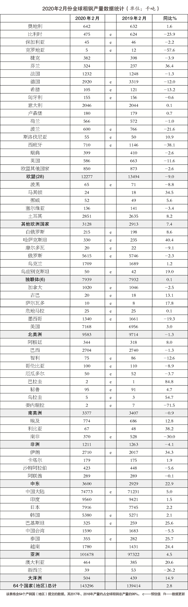 本報(bào)訊(記者朱曉波)3月23日,世界鋼鐵協(xié)會(huì)(WSA)發(fā)布了2月份全球粗鋼產(chǎn)量數(shù)據(jù)。2月份,全球64個(gè)納入世界鋼協(xié)統(tǒng)計(jì)的國家和地區(qū)粗鋼產(chǎn)量為1.433億噸,同比增長2.8%。