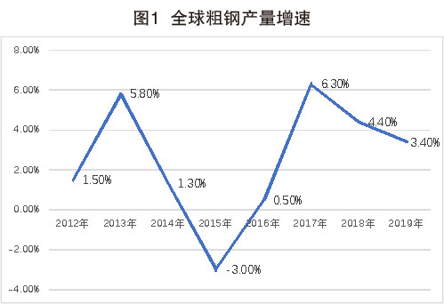 據(jù)世界鋼協(xié)統(tǒng)計(jì),2019年,全球粗鋼產(chǎn)量達(dá)到18.699億噸,同比增長(zhǎng)3.4%,同比增速出現(xiàn)三連降。2019年,除亞洲和中東地區(qū)外,其他地區(qū)的粗鋼產(chǎn)量同比均下降。